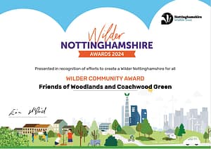 And finally, we are really pleased to have received a Wilder Nottinghamshire award from Nottinghamshire Wildlife Trust recognising our positive active for nature and the environment. This really boosted our volunteers knowing what they are doing is recognised by the wider community. We couldn’t do what we do without our amazing team of volunteers.