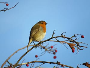 You should be able to hear birds defending their territory such as the Robin, this little bird is one of the few you can hear year-round as it sings to defend its winter territory and start wooing a mate ready for spring.